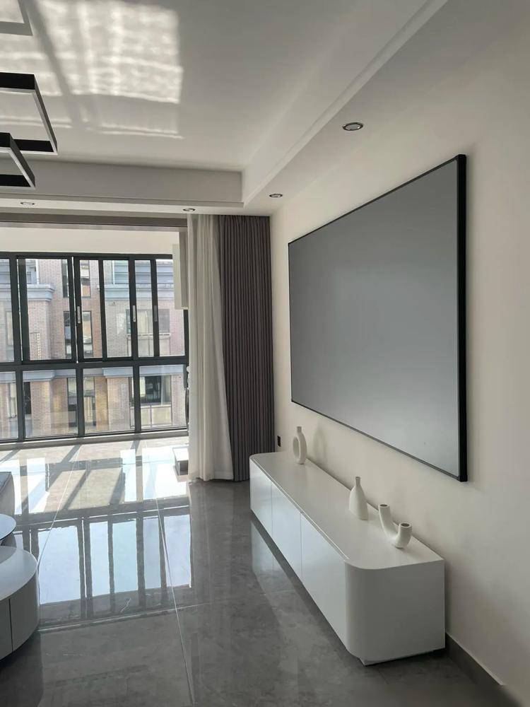 贴合实际需要进行装修。当老爸装修好后,顺利地将这些需求都实现了,在装修过程中,有一个细节也是引起大家关注,那就是原本应该装电视机的位置,却换成了一块投映幕布。